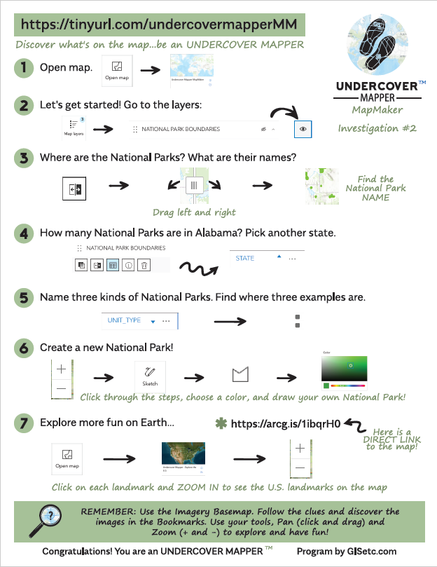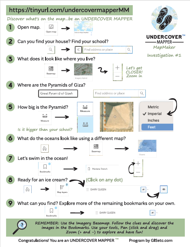 Currently, you can go on an Undercover Mapper adventure in MapMaker or MapViewer. Find a version that aligns with the activities and lessons you’re doing next with students.  They’ll have experience with the tools that they’re about to use. Happy mapping!